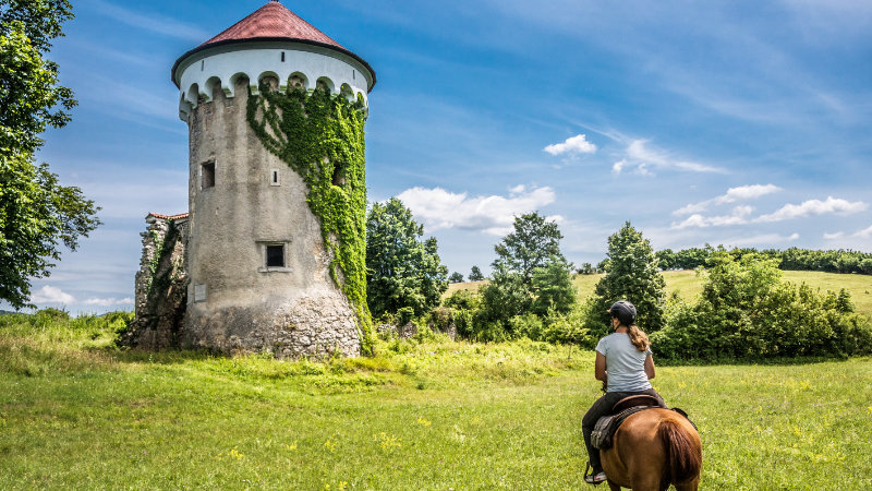 Nyhet! Följ med på en oförglömlig ny ritt genom Sloveniens vilda natur och historia. Ni tar er längs hemliga stigar, genom djupa skogar och över böljande kullar – till gömda sjöar och medeltida borgar. Höjdpunkten blir Predjama, den legendariska borgen som byggts in i en grotta och en gång var hemvist för den berömde rövaren Erazem. Det här är en ridresa fylld av äventyr, kultur och storslagna vyer – där varje dag bjuder på nya upptäckter.