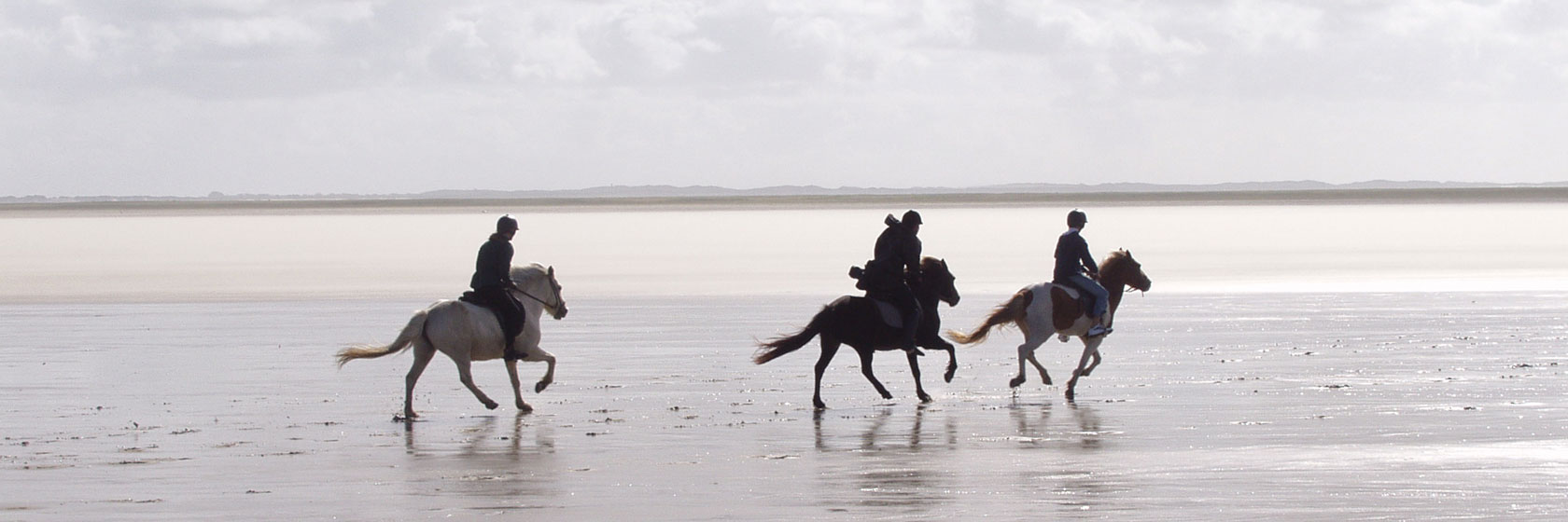Römö är Danmarks sydvästligaste ö och lättillgänglig med bro från fastlandet. Hela 90% av ön består av orörd natur varav hälften är sandstrand. Det vill säga ett eldorado för ryttare. Här finns faktiskt Nordeuropas största sandstrand. Den är milslång och hundratals meter bred! Du kan tölta och galoppera på perfekt underlag i total stillhet for ever – obeskrivbart!