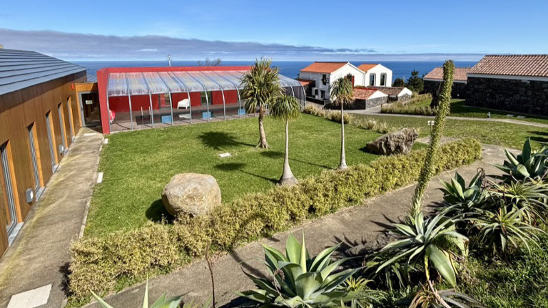 Du bor i den nyöppnade Lodgen med dubbelrum med eget badrum, vardagsrum och vacker trädgård. Huset är en verklig oas av lugn och komfort, omgiven av trädgårdar och ängar med hästar. Huset är byggt av svarta vulkaniska stenar och japanskt cederträ i en lokal traditionell stil. Från alla rum och terrassen har du en fantastisk utsikt till Atlanten och tre grann öar. På kvällen äter ni middag i restaurangen eller på uteserveringen.