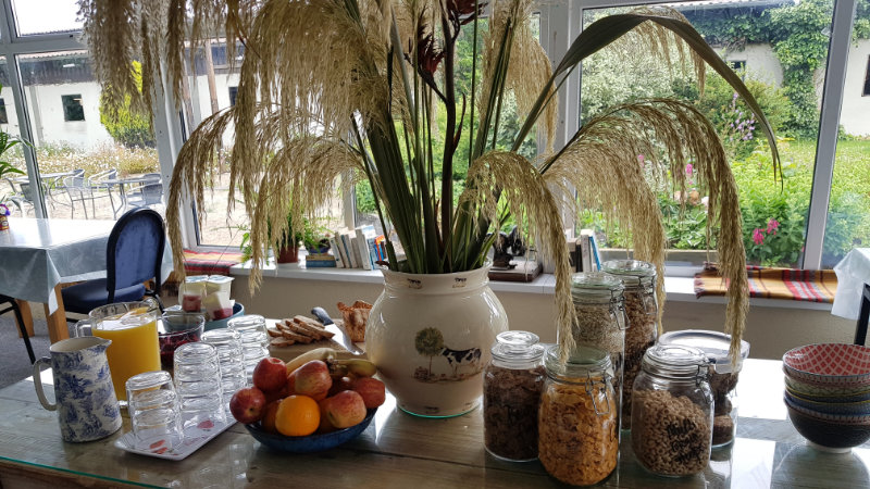 Frukosten består av en ”Full Irish breakfast”, dvs förutom kontinental frukost även en lagad del bestående av ägg tillredda efter ditt önskemål, korv etc.