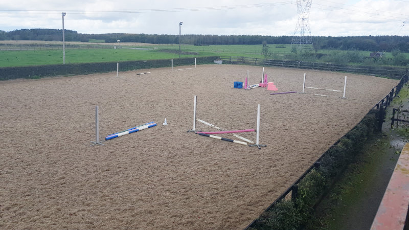På anläggningen finns det 1 ridhus 23 x 45m, 1 stor utebana 35 x 75m och en terrängbana med hinder som passar alla nivåer - från enkla stockar upp till 1,10m.