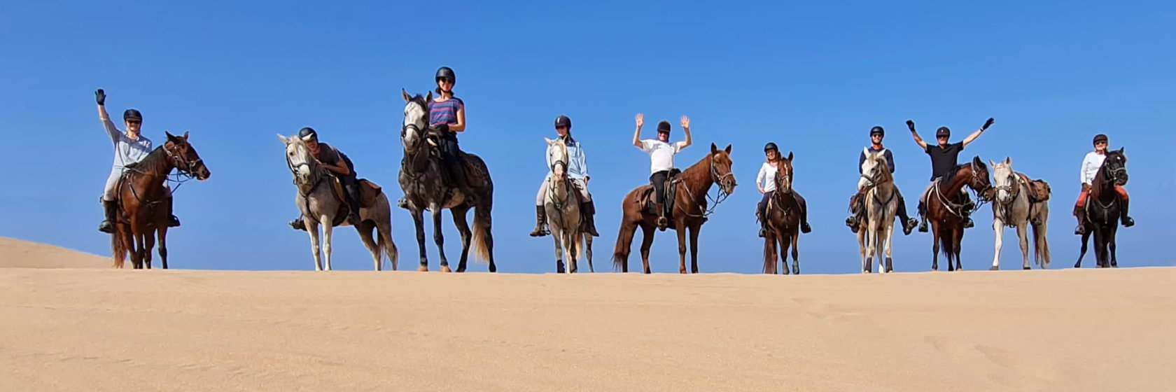 Du kan välja mellan enklare lektioner och/eller uteritter. Uteritterna bjuder på härliga galopper på den långa sandstranden eller genom små genuina berberbyar och upp i bergen med en fantastisk utsikt över kusten.