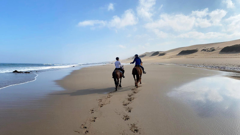 Alternativ 2: Njut av en morgonutflykt till havet, så att hästarna kan gå i vattnet. Detta är idealiskt för återhämtning. För de som föredrar att ha en ledig eftermiddag, kan välja att koppla av på stranden, unna dig en massage (ingår ej) eller besöka Mirleft för att ta med dig några souvenirer. Valet är ditt!