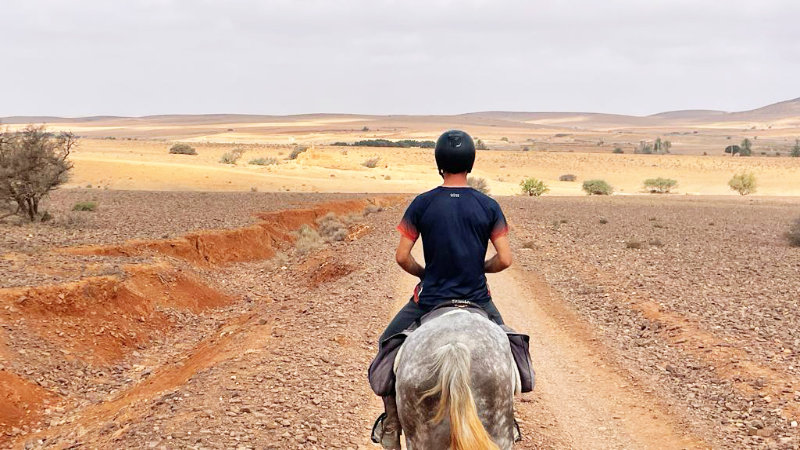 Detta är en långritt i ett varierande landskap. Ni börjar längs havet med de vackra stränderna och röda klipporna och rider sedan upp i bergen med arganträden och avslutar ritten i Smahra. Därifrån körs ni och hästarna tillbaka till ranchen sista natten för möjlighet att boka en välbehövlig massage. Ni rider ca 6-7 timmar/dag. Ni bor på ranchen första och sista natten och övriga nätter på små hotell och gästhus.