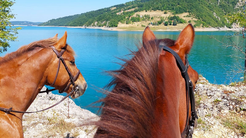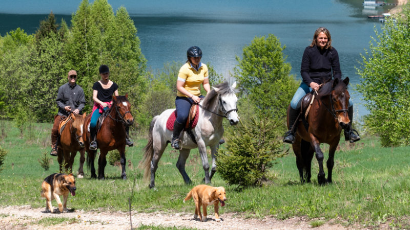 Dag 3 – Efter frukost förbereder vi hästarna för en ca 2–3 timmars ridtur som tar oss ner till Zlatar-sjöns strand. Om vädret är varmt kan vi ta ett snabbt dopp innan vi återvänder till gården. Efter lunchen tar vi en vandringtur genom naturreservatets skog och byn Amžići, besöker vänliga grannar och deras gårdar längs vägen och upplever lite av en tidsresa. Vi återvänder till gården för middag. Efter middagen, om energin fortfarande finns kvar, tar vi en kvällspromenad till den närliggande staden Nova Varoš och tar en kopp kaffe. Om inte, går vi till sängs.
