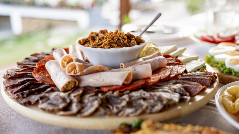 Alla måltider ingår i paketet och du kommer att serveras traditionell, hemlagad mat. Det är enkel men god och näringsrik mat, mestadels tillagad av lokala, ekologiska råvaror och ofta färska från trädgården under sommaren. Kött och mjölk utgör en betydande del av den lokala kosten, eftersom landskapet här är väl anpassat för djur som lever fritt utomhus och äter gräs, majs och korn. Grönsaker och frukt är svårare att odla här, men en vegetarisk meny kan ordnas med förhandsbesked, med fokus på ägg och ost.