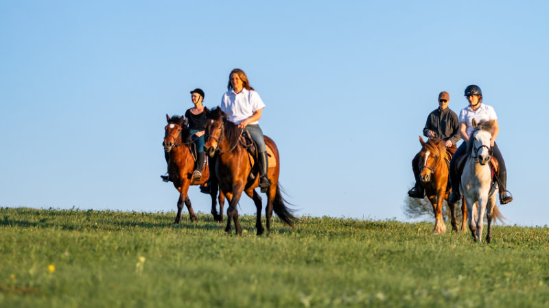 Dag 5 – Efter frukost gör vi oss redo för en heldagsritt, 5–6 timmar. Vi rider genom skogar och betesmarker till en gammal hängbro över Zlatar-sjön, som tidigare var den enda förbindelsen till “civilisationen” för byarna på andra sidan sjön. Där njuter vi av vår picknick-lunch med en härlig utsikt. Efter lunchen kan vi ta ett dopp eller bara koppla av vid vattnet. Uppfriskade sitter vi upp på hästarna igen och rider hemåt genom pittoreska byar och natursköna skogar. Väl hemma tar vi hand om hästarna och njuter av middag tillsammans.