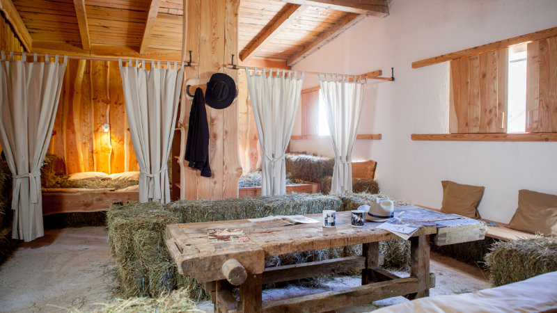 Antingen sover du i stugan eller i tält.